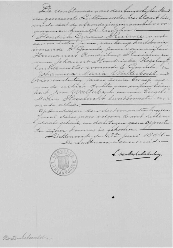 [13] www.familysearch/Registers Burgerlijke Stand/Groenlo/Huwelijksbijlagen 1883-1912, no 11
