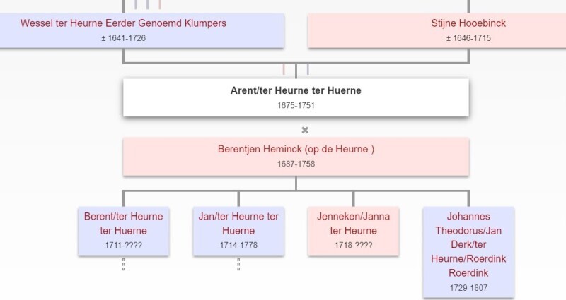 00.07.1753 den .. - Jan Derk terHeurne , j.m. soon van wijlen Arent ter Heurne uit Huppel onder Wenterswijk, met Aeltjente Veneversloo, wed. van wijlen Thomas Roordink in Ephsele. Getrout d. 5 august.
